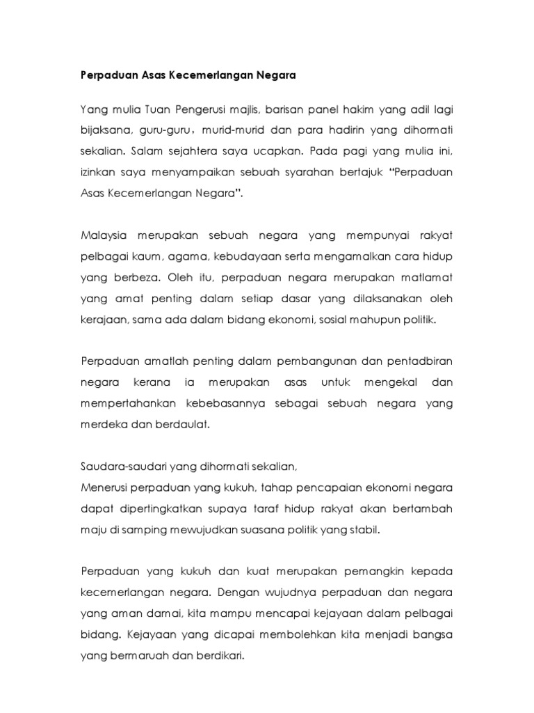 Salah satu usaha mewujudkan perpaduan kaum di negara kita adalah peranan yang dimainkan oleh pihak sekolah. Oleh hal yang sedemikian, perpaduan di kalangan rakyat menjadi salah satu faktor penting dalam penjanaan ekonomi negara. Satu cara yang penting untuk mewujudkan perpaduan di dalam sesebuah negara ialah menerusi pendidikan. Doc integrasi nasional forum azizah mohamad academia edu. Kejayaan malaysia hasil daripada perpaduan bangsa. Berdasarkan pemerhatian anda jelaskan kejayaan yang dicapai oleh negara menerusi perpaduan bangsa malaysia. Misalnya, dasar ekonomi baru yang dilancarkan pada tahun 1970 oleh tun abdul razak, adalah bertujuan untuk menyusun semula. Cabaran menjadikan malaysia sebagai sebuah negara maju (a). Upaya menjaga keutuhan nkri mutlak dilakukan oleh segenap bangsa karena sebagai bentuk negara tidak bisa diubah dan digugat oleh siapapun. Pembangunan yang dicapai begitu pantas dan dinamik. Belajar & kajilah sejarah untuk mendapatkan manfaat berguna & meningkatkan kualiti hidup kita. 1malaysia adalah penerusan agenda pembinaan negara menerusi perpaduan yang utuh dalam kalangan rakyat malaysia yang berbilang kaum. Perpauan dan integrasi rakyat dalam sebuah negara berbilang kaum sukar dicapai tanpa pendedahna awal yang kejayaan negara malaysia mengekalkan perpaduan masyarakat yang berbilang kaum sejak merdeka hingga.