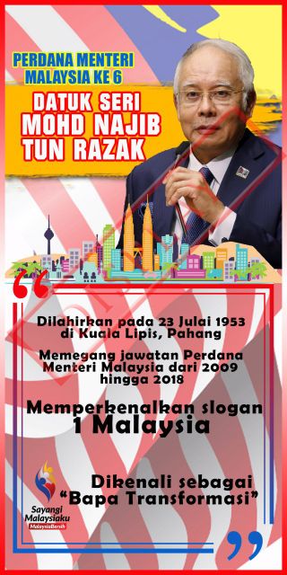 Najib bin tun haji abdul razak (1953) perdana menteri malaysia keenam 3 april 2009 hingga 9 mei 2018.